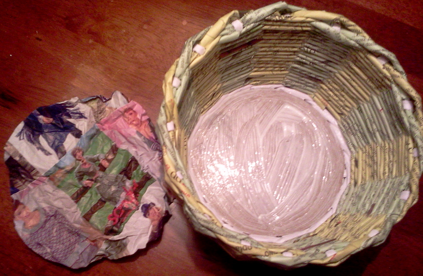 Wytnijcie z kolorowego czasopisma koło troszkę większe, niż dno koszyka.