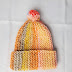 Prostokąt wykonałam samymi oczkami prawymi, nabierając 30 oczek na początku i stosujac rzędy skrócone tak, by góra czapki była mniejsza, niz dół. Kolory układają się w poprzeczne pasy.